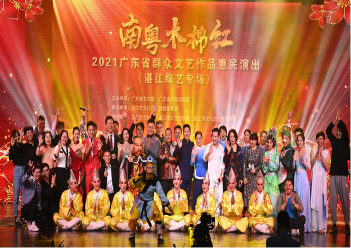 11月30日晚,2021“南粵木棉紅”廣東省群眾文藝作品惠民演出活動(湛江綜藝專場)在省文化館小劇場精彩上演,為現(xiàn)場觀眾帶來富有湛江特色的“開心廣場”文化品牌項目,將多彩的湛江文化帶到花團錦簇的美麗羊城,現(xiàn)場歌舞飛揚、掌聲連連。