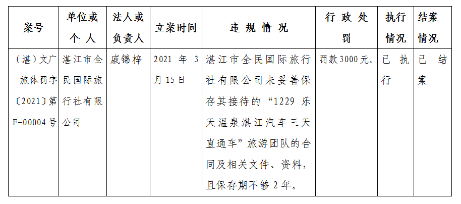 2021年湛江市文化廣電旅游體育局行政處罰案件處理登記表4