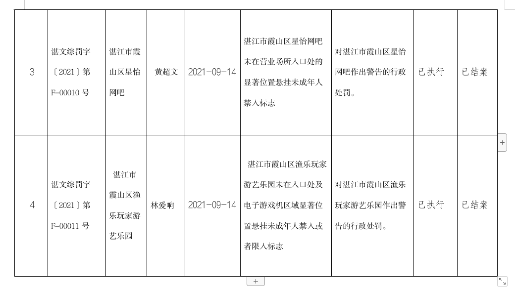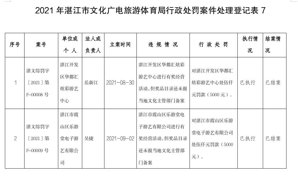2021年湛江市文化廣電旅游體育局行政處罰案件處理登記表7