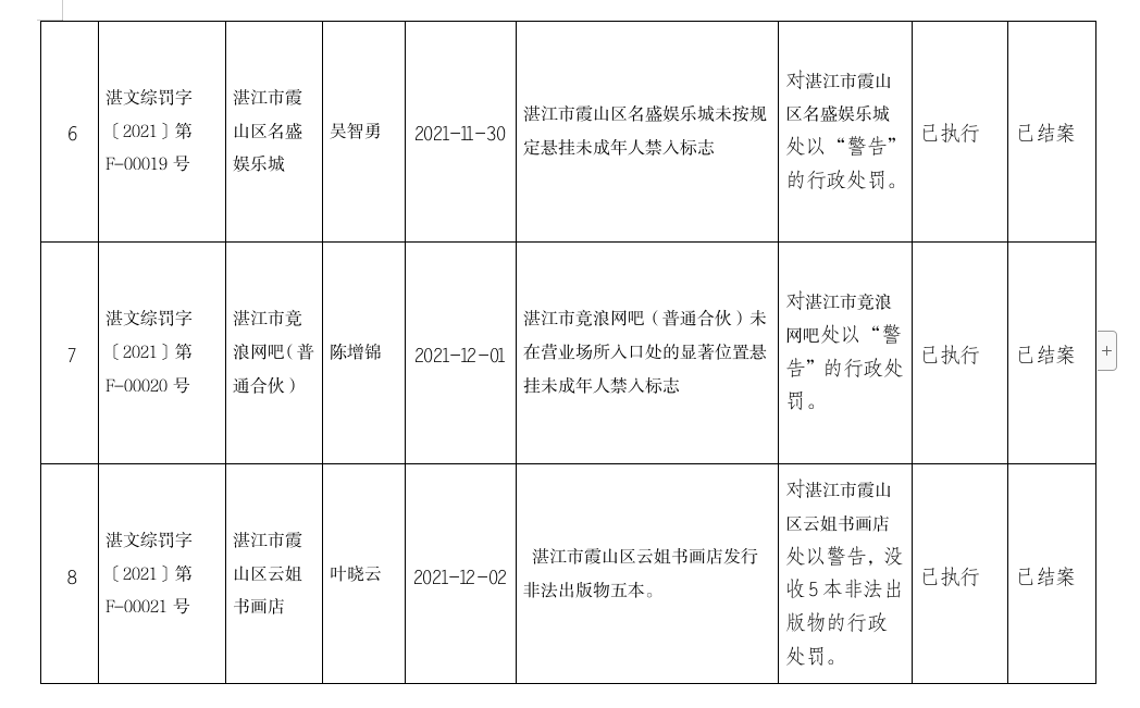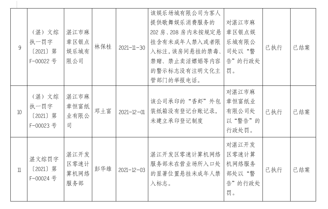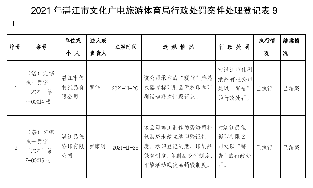 2021年湛江市文化廣電旅游體育局行政處罰案件處理登記表9