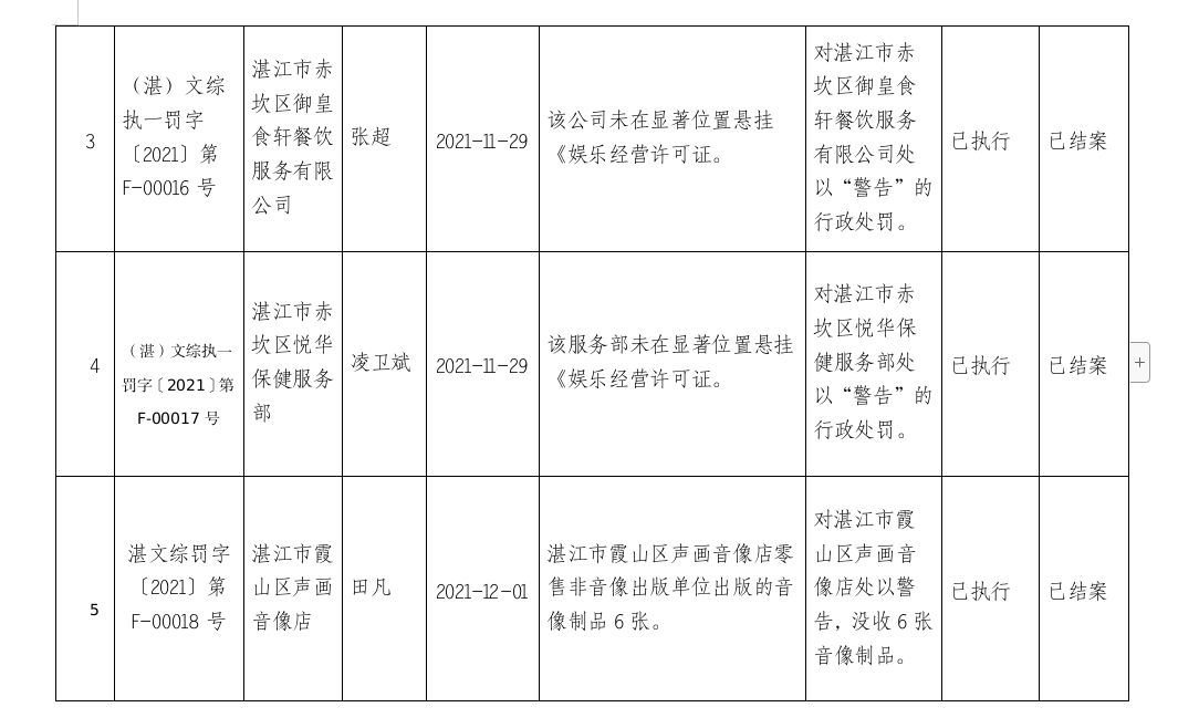 當(dāng)前位置  首頁 > 湛江市文化廣電旅游體育局 > 政務(wù)公開 > 行政執(zhí)法情況公開