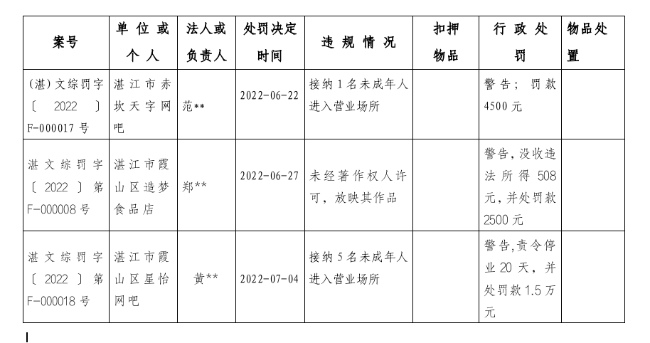 2022年湛江市文化廣電旅游體育局行政處罰案件處理登記表7