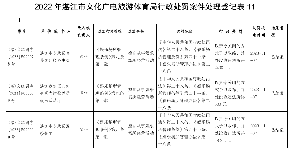 2022年湛江市文化廣電旅游體育局行政處罰案件處理登記表11