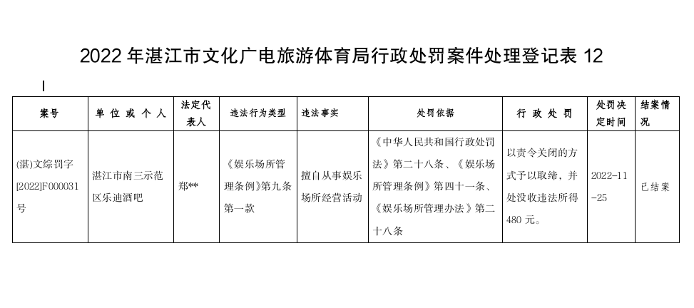 2022年湛江市文化廣電旅游體育局行政處罰案件處理登記表12