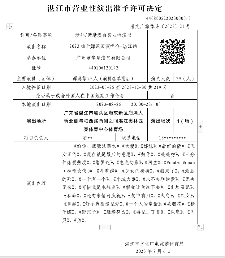 湛江市營(yíng)業(yè)性演出準(zhǔn)予許可決定-18