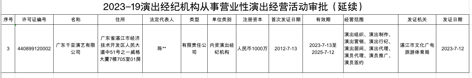 2023-19演出經(jīng)紀(jì)機(jī)構(gòu)從事營業(yè)性演出經(jīng)營活動審批(延續(xù))