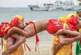 東海人龍舞遠(yuǎn)望動感迷人,生機無限;近觀粗獷有力,威武雄壯,體現(xiàn)出舞龍者注重配合的集體主義精神和聰明才智,特別是在遼闊的淺水沙灘上表演,更能展示了中國“龍”氣吞山河的豪邁氣魄,具有濃厚的鄉(xiāng)土氣息和海島特色。