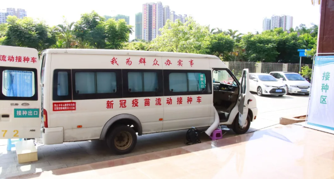 3月25日高校和大型企業(yè)率先開展接種服務(wù),湛江市衛(wèi)生健康局搭建流動接種點,組織醫(yī)務(wù)人員進高校、進企業(yè)接種。60周歲以上人群接種工作開展后,統(tǒng)籌組織廣東醫(yī)科大學附屬醫(yī)院、湛江中心人民醫(yī)院、廣東醫(yī)科大學附屬第二醫(yī)院、廣東農(nóng)墾中心醫(yī)院等四大醫(yī)院112名醫(yī)護人員組成疫苗接種流動隊伍,將5臺大巴車或急救車改造成“新冠疫苗接種車”,每臺車上均配有經(jīng)驗豐富的醫(yī)生和急救設(shè)備藥品保障,在市區(qū)開展“一隊一車對一區(qū)”送服務(wù)上門。接種服務(wù)進社區(qū)、進家庭、進工地,積極開展“敲門行動”,逐戶逐人、逐樓棟逐門店逐工地開展地毯式摸排,解決接種疫苗的“最后一公里”難題。提前組織社區(qū)家庭醫(yī)生對老年人群體進行接種前健康檢查,減少不必要的來回奔波。組織醫(yī)務(wù)人員進海島,為特呈島等漁民和從事海上作業(yè)的人員接種。