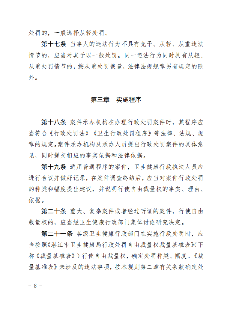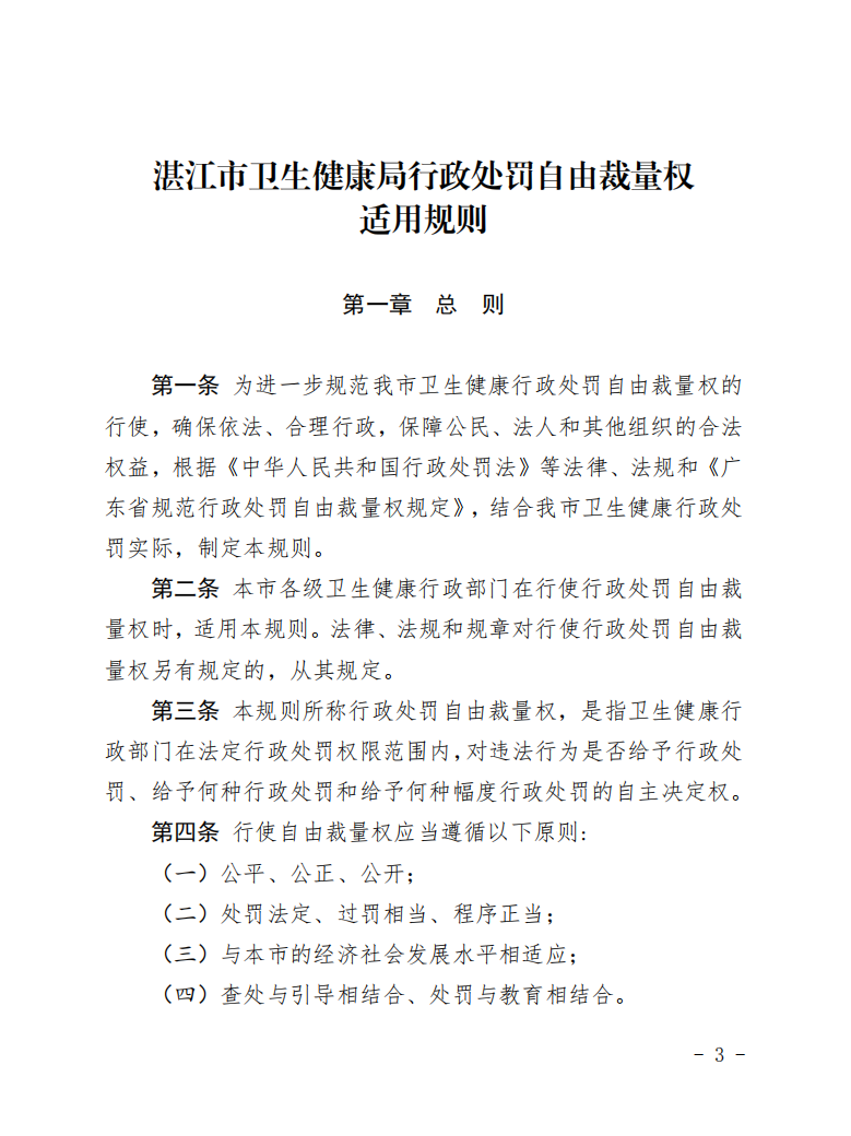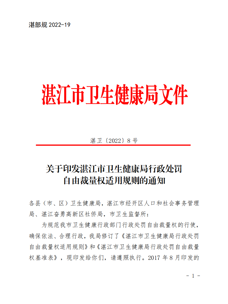 關(guān)于印發(fā)湛江市衛(wèi)生健康局行政處罰自由裁量權(quán)適用規(guī)則的通知