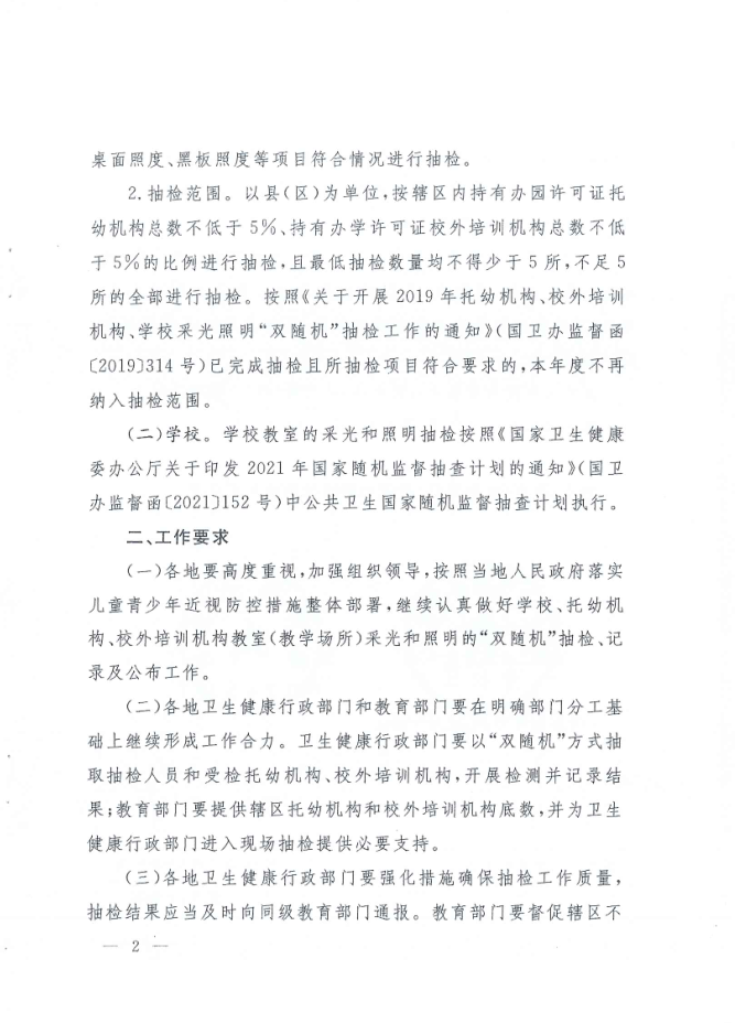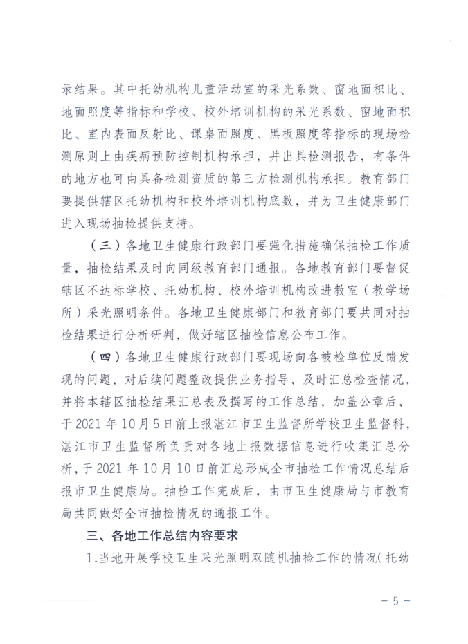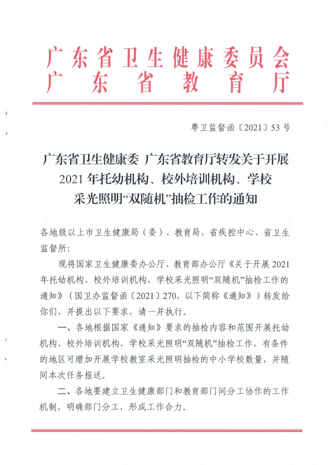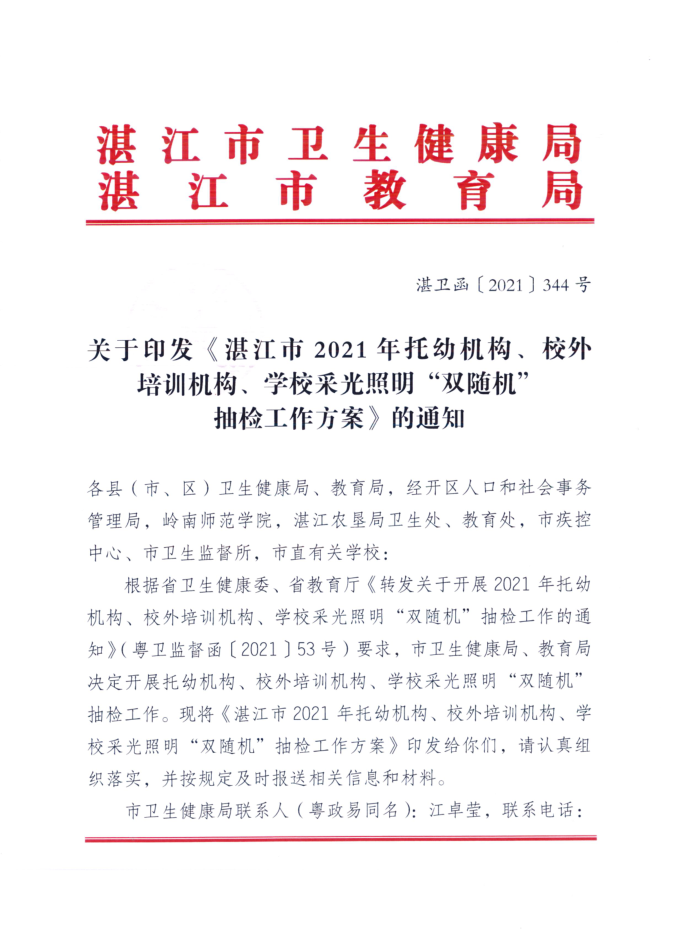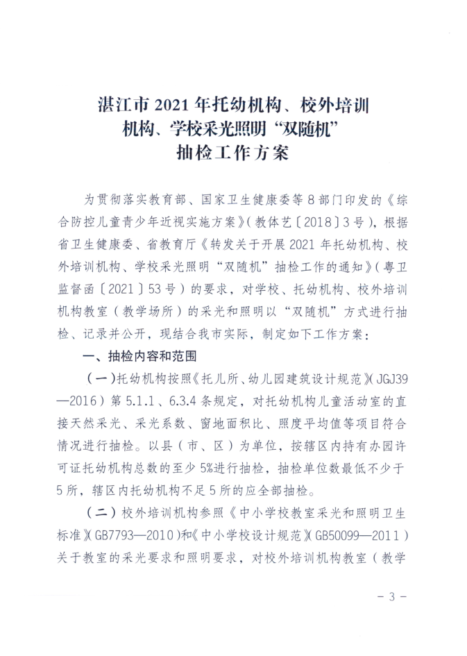 湛江市衛(wèi)生健康局 湛江市教育局關(guān)于印發(fā)《湛江市2021年托幼機(jī)構(gòu)、校外培訓(xùn)機(jī)構(gòu)、學(xué)校采光照明“雙隨機(jī)”抽檢工作方案》的通知