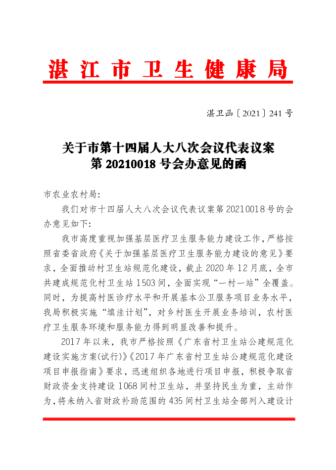 關(guān)于市第十四屆人大八次會議代表議案第20210018號會辦意見的函