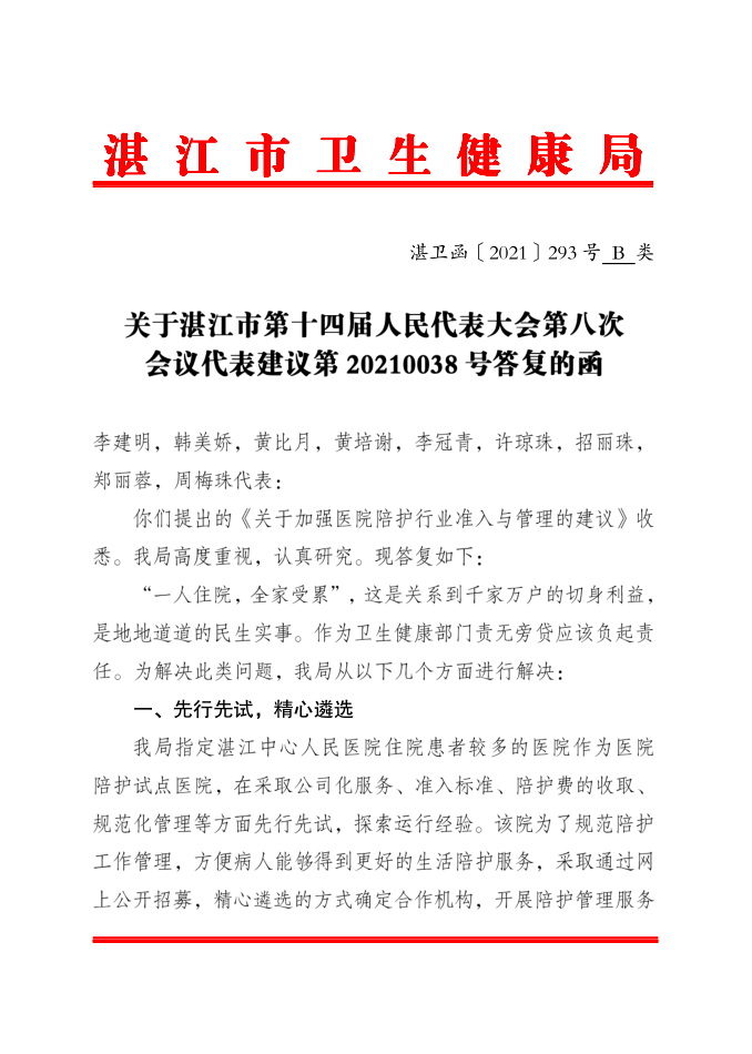 關(guān)于湛江市第十四屆人民代表大會第八次會議代表建議第20210038號答復的函