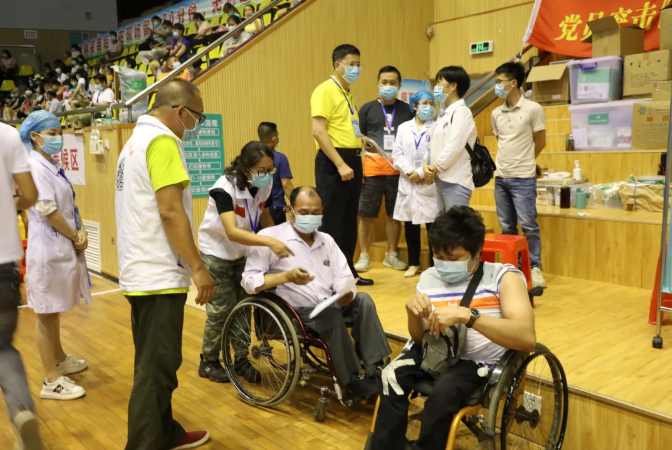5月27日,湛江市體育中心新冠疫苗大型臨時接種點正式啟用。臨時接種點內(nèi)分為四大片區(qū),由湛江中心人民醫(yī)院、廣東醫(yī)科大學附屬醫(yī)院、廣東農(nóng)墾中心醫(yī)院、廣東醫(yī)科大學附屬第二醫(yī)院等四家醫(yī)院各自負責一個片區(qū)。 接種點內(nèi)共設(shè)置60個室內(nèi)接種單元,100個登記處,單日最高接種量可達15000—16000劑次。自6月3日起,接種點接種時間還延長了1.5小時。