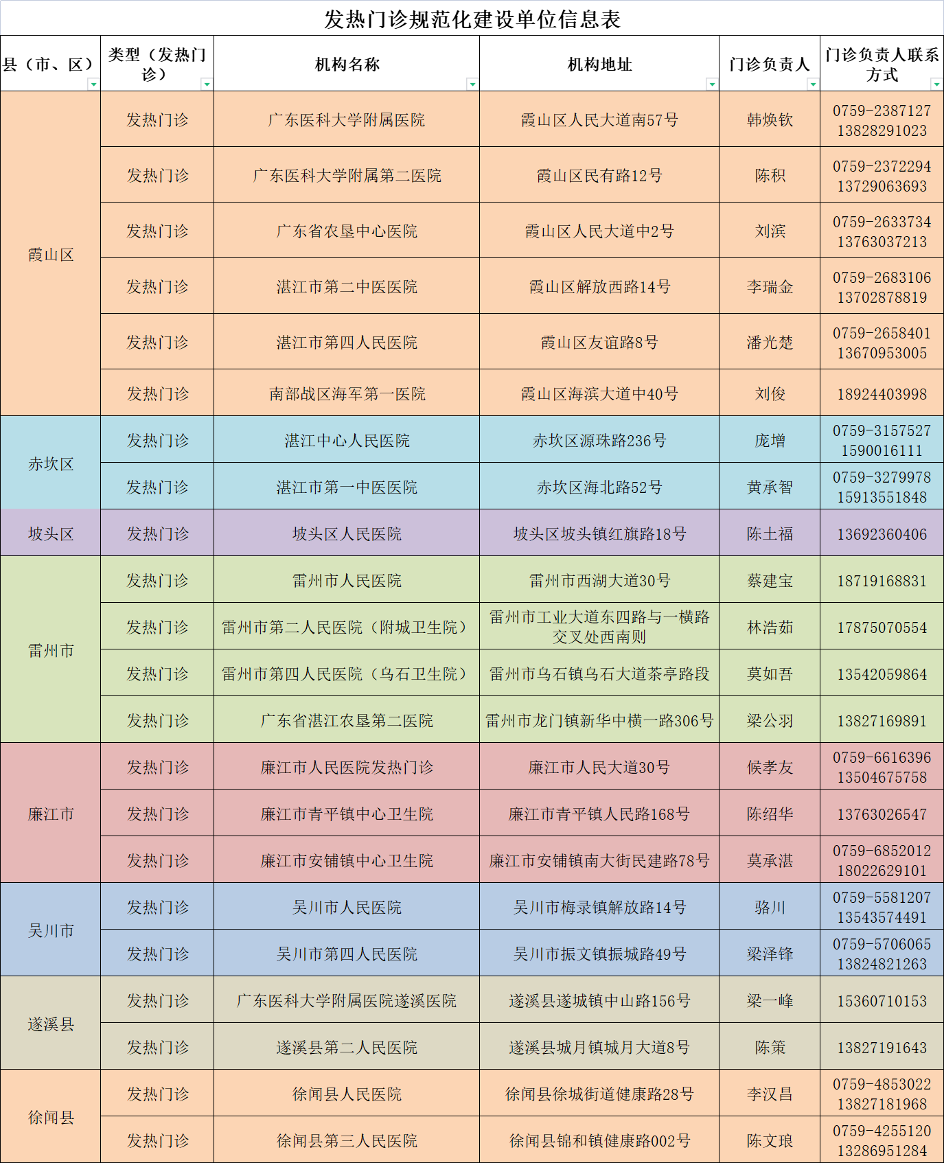 最新最全!湛江市發(fā)熱門診、發(fā)熱診室名單公布