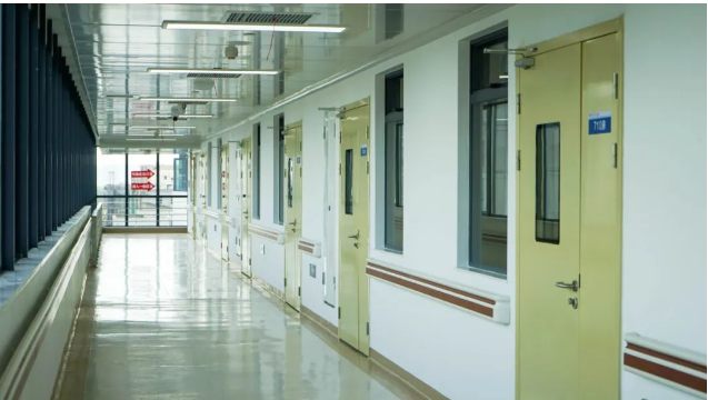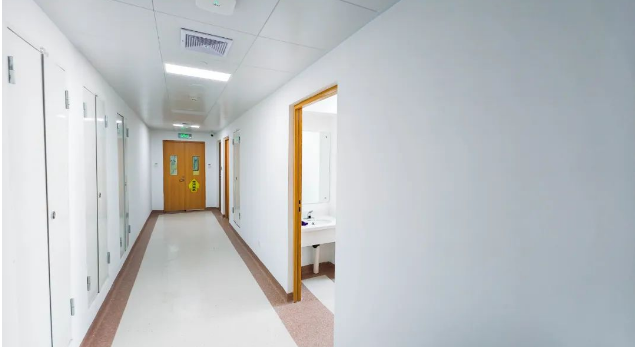 大樓共有九層,第二至第七層為可轉(zhuǎn)換負(fù)壓病房,總床位282張;首層設(shè)置有PCR實(shí)驗(yàn)室、常規(guī)檢驗(yàn)室和醫(yī)學(xué)影像檢查室;第八層設(shè)置潔凈手術(shù)室5間,其中包括一間復(fù)合手術(shù)室和一間負(fù)壓手術(shù)室;樓頂配備了直升機(jī)停機(jī)坪,可用于緊急情況下的轉(zhuǎn)運(yùn)救援。
