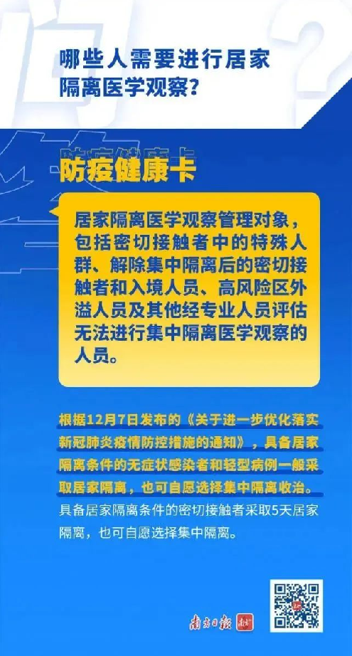 12月7日下午,國務院聯(lián)防聯(lián)控機制發(fā)布《關(guān)于進一步優(yōu)化落實新冠肺炎疫情防控措施的通知》,明確具備居家隔離條件的無癥狀感染者和輕型病例,可以采取居家隔離。根據(jù)《新冠肺炎疫情居家隔離醫(yī)學觀察指南》等相關(guān)文件,對居家隔離期間的防護要點進行梳理!