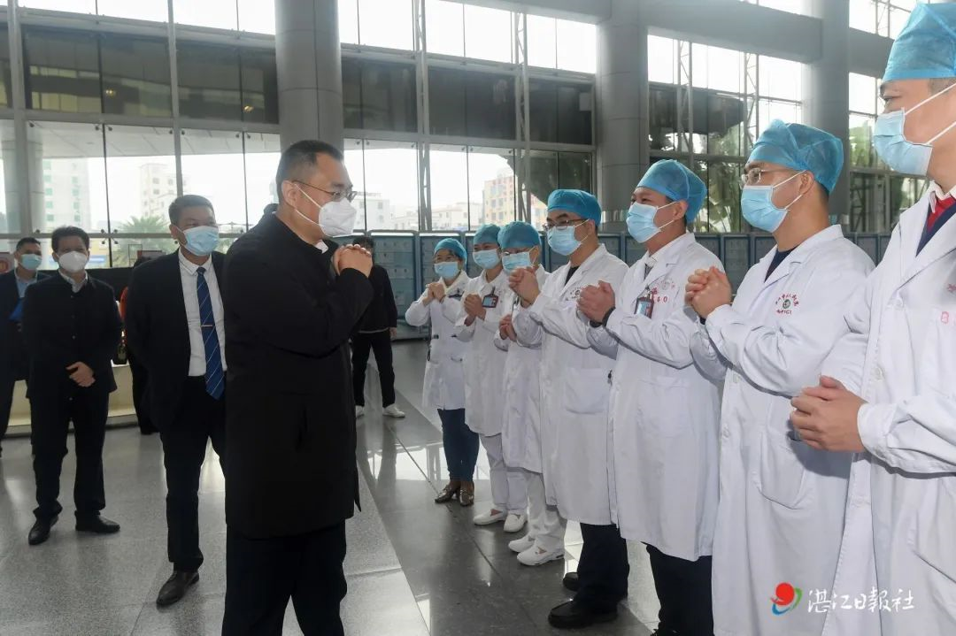 在湛江中心人民醫(yī)院,劉紅兵與醫(yī)務(wù)人員深入交流,關(guān)切詢問醫(yī)療救治工作開展情況,并對廣大醫(yī)務(wù)人員的辛勤奉獻(xiàn)表示感謝。他說,疫情發(fā)生三年來,全市廣大醫(yī)務(wù)工作者始終堅(jiān)持人民至上、生命至上,在承擔(dān)日常診療服務(wù)的同時,全力投入疫情防控救治工作,恪盡職守、無私奉獻(xiàn)、日夜奮戰(zhàn),為我市疫情防控工作作出了重要貢獻(xiàn)。他寄語廣大醫(yī)務(wù)工作者一如既往保持昂揚(yáng)斗志,發(fā)揚(yáng)救死扶傷、艱苦奮斗精神,全面落實(shí)新冠病毒感染“乙類乙管”各項(xiàng)措施,提升醫(yī)療救治能力,科學(xué)調(diào)配醫(yī)療資源,切實(shí)滿足節(jié)日期間群眾就醫(yī)需求,更好保障人民群眾生命安全和身體健康。