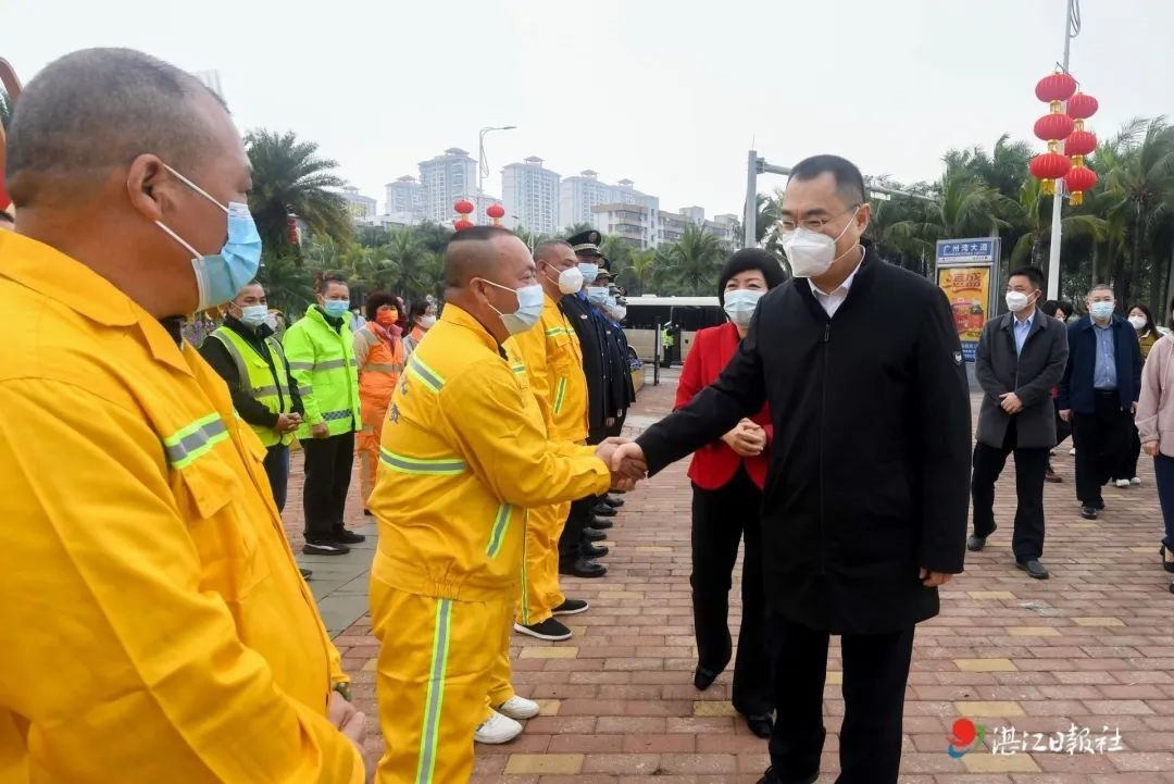 節(jié)日的金沙灣奧運(yùn)女神廣場處處繁花似錦,“向海而生、芳華依然”的春節(jié)花展吸引了眾多游客,濃濃的年味撲面而來。連日來,城市建設(shè)管理工作人員認(rèn)真做好美化、凈化、亮化、序化等工作,為人民群眾歡度春節(jié)提供干凈靚麗、安全有序的城市環(huán)境。劉紅兵來到環(huán)衛(wèi)、市政、園林、執(zhí)法一線人員中間,為大家送上節(jié)日的問候,感謝他們用勤勞的雙手換來城市的潔凈美好,希望大家發(fā)揚(yáng)吃苦耐勞的精神,堅(jiān)守工作崗位、加強(qiáng)文明執(zhí)法,清潔城市、扮靚市容,助力湛江創(chuàng)建全國文明城市。