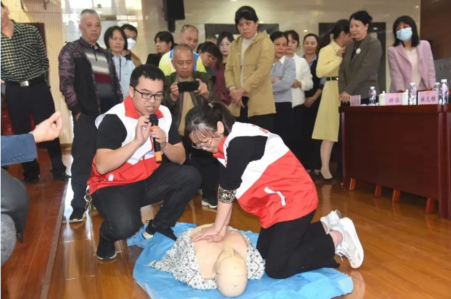 活動邀請了湛江中心人民醫(yī)院副主任技師卓紫虹做“一般人群飲食指導(dǎo)”講座。她以健康素養(yǎng)為主題,就當前人們存在的健康問題,常見飲食結(jié)構(gòu),如何合理膳食等生活方式與行為展開詳細的講解,倡導(dǎo)干部職工從日常生活的點點滴滴做起,關(guān)愛身體、關(guān)愛健康,倡導(dǎo)健康文明的生活方式,遠離疾病,以健康的體魄投入到工作中去。雷州市人民醫(yī)院主管護師游浪淑和雷州市人民醫(yī)院副主任藥師吳永聰分別做了“海姆立克急救法”講座和“心肺復(fù)蘇術(shù)”講座。講座中,她們用淺顯易懂的語言,生動、細致的向大家講授了 “海姆立克”急救法、“海姆立克”征象及“心肺復(fù)蘇術(shù)”急救采取的手法,使現(xiàn)場的干部職工了解了急救的基本要領(lǐng)。