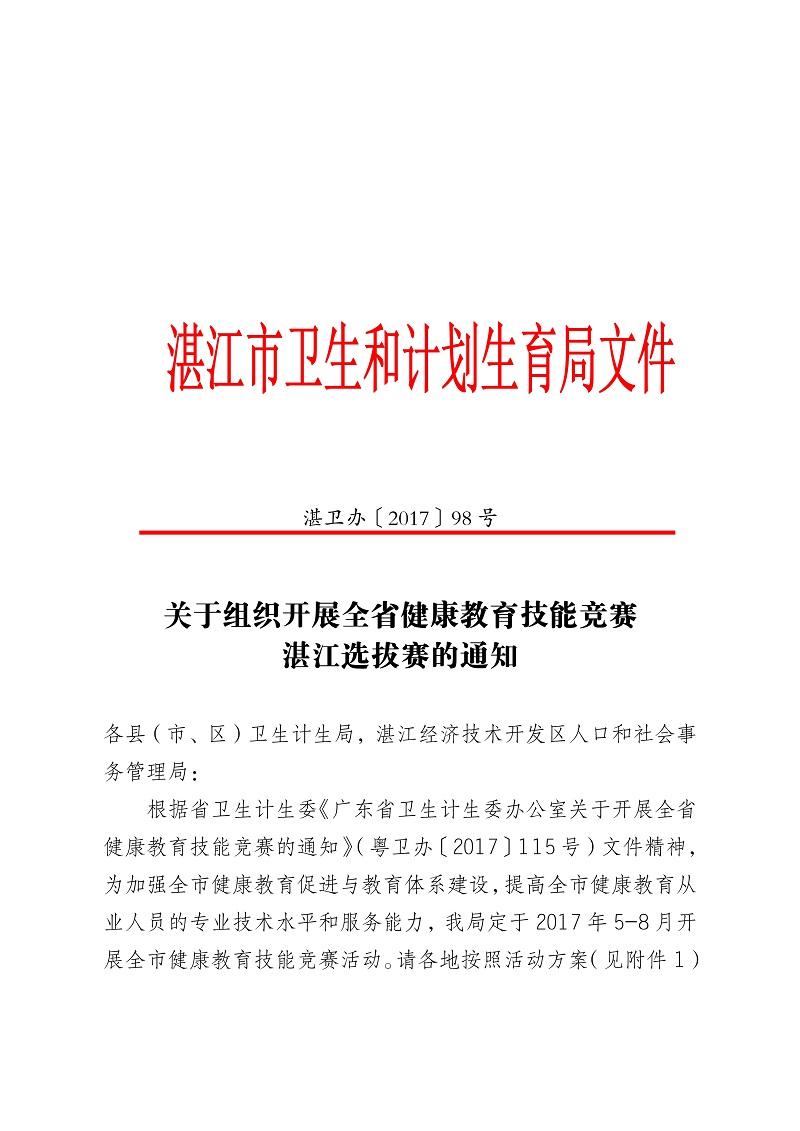 附件:關(guān)于組織開展全省健康教育技能競賽湛江選拔賽的通知