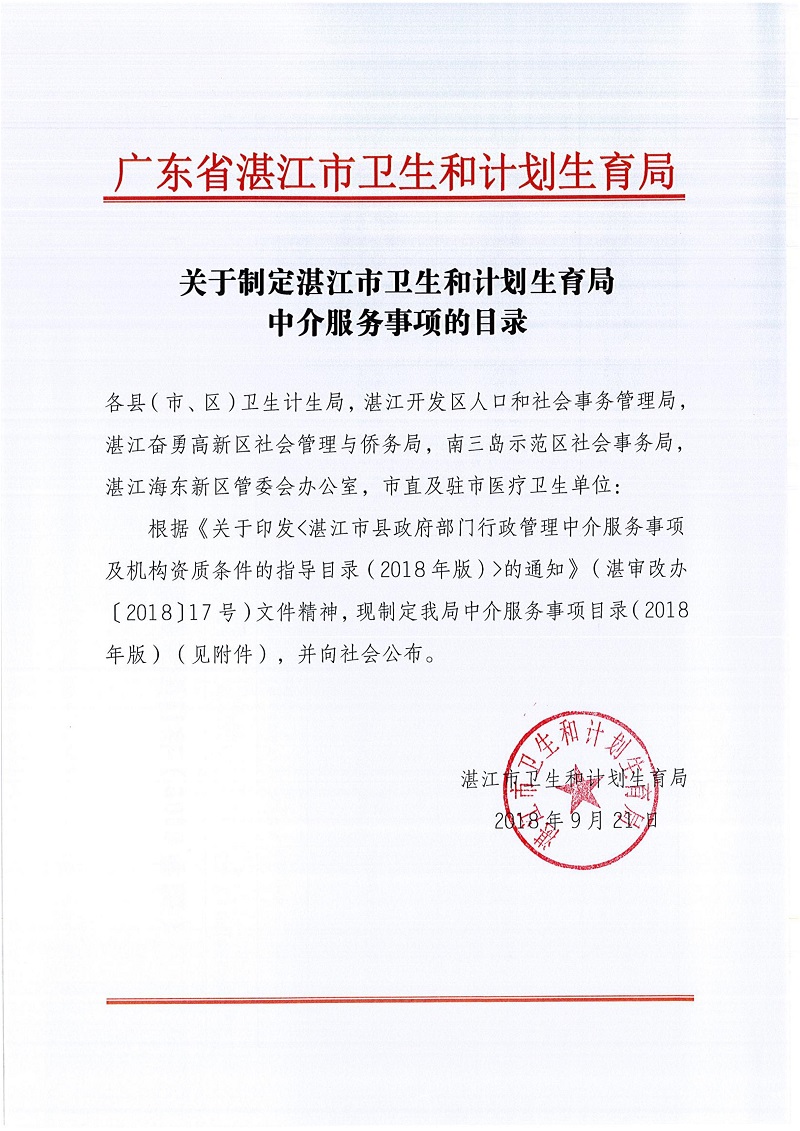 關(guān)于制定湛江市衛(wèi)生和計(jì)劃生育局中介服務(wù)事項(xiàng)的目錄