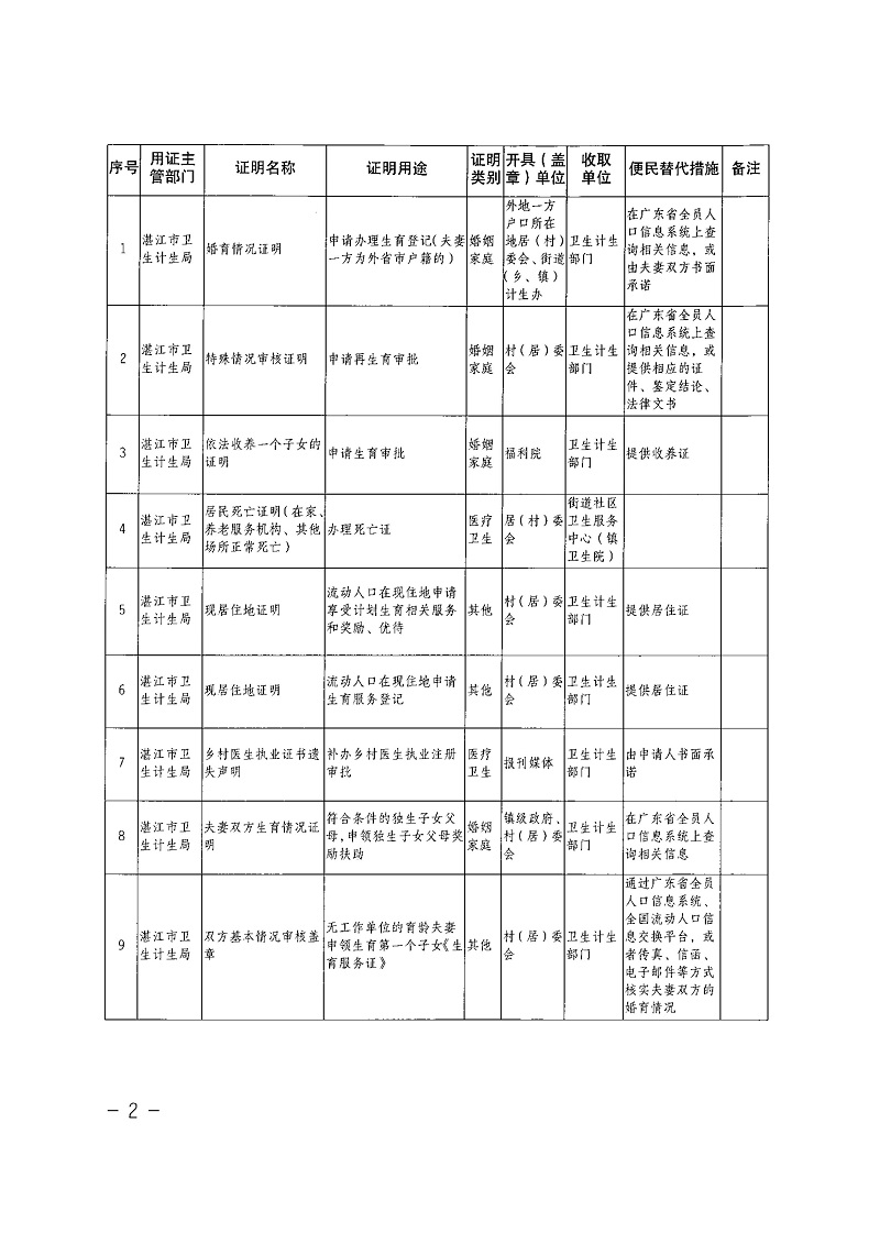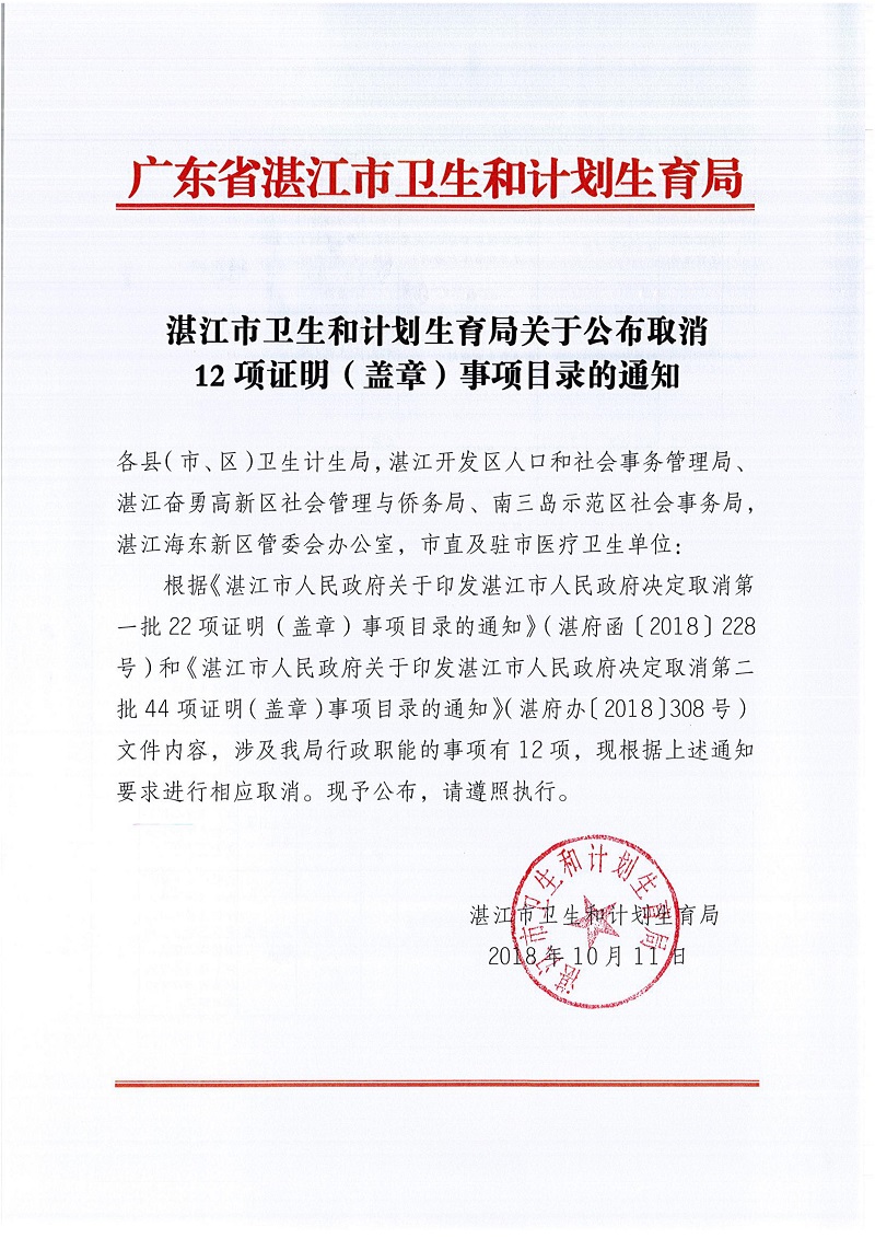 湛江市衛(wèi)生和計劃生育局關(guān)于公布取消12項證明(蓋章)事項目錄的通知