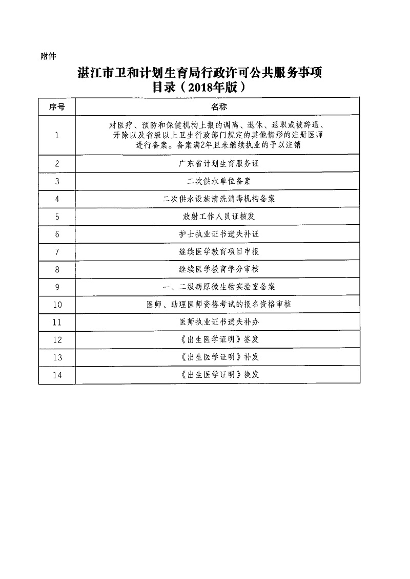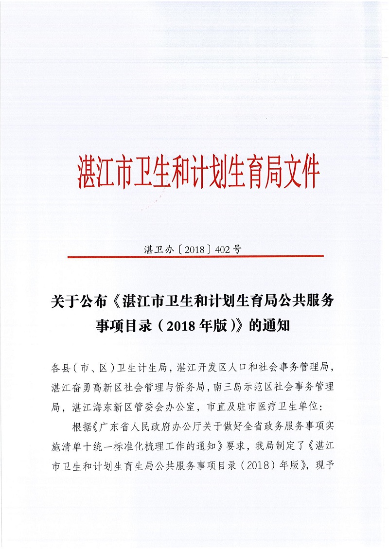 關(guān)于公布《湛江市衛(wèi)生和計(jì)劃生育局公共服務(wù)事項(xiàng)目錄(2018年版)》的通知