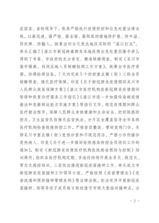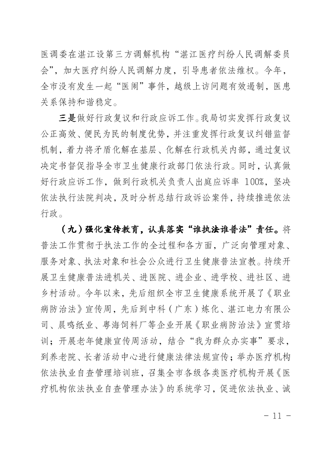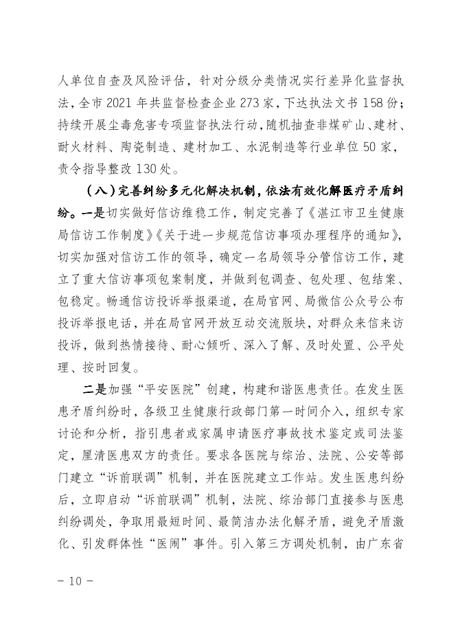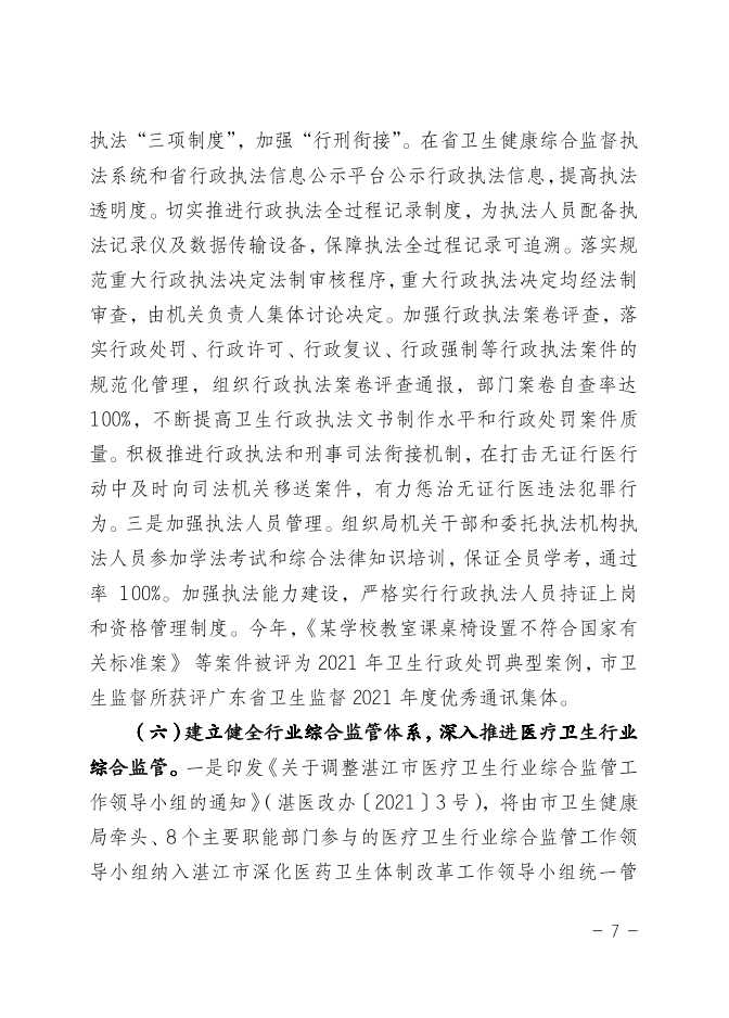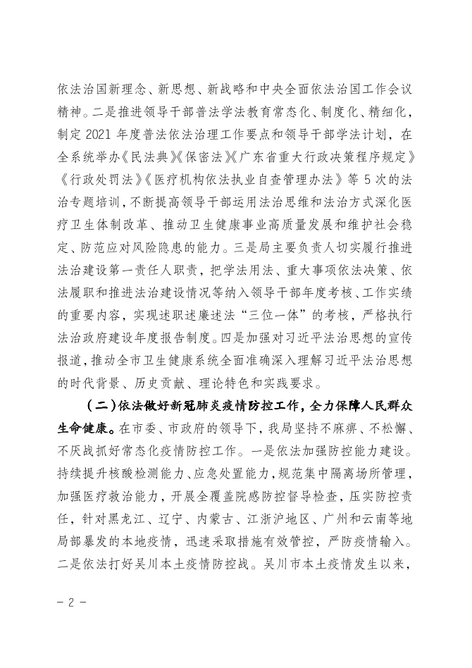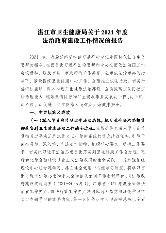 湛江市衛(wèi)生健康局關于2021年度法治政府建設工作情況的報告