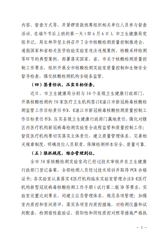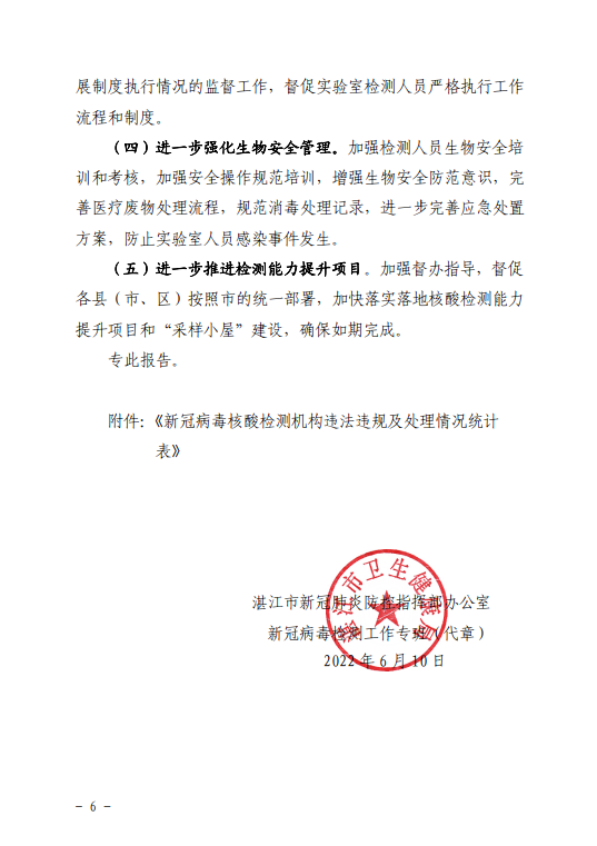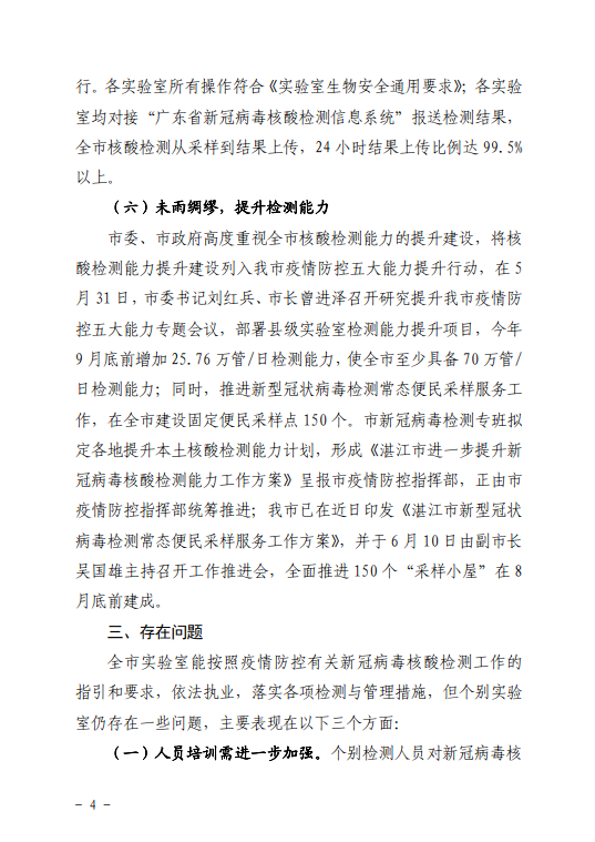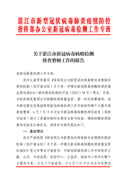 關(guān)于湛江市新冠病毒核酸檢測排查整頓工作的報告