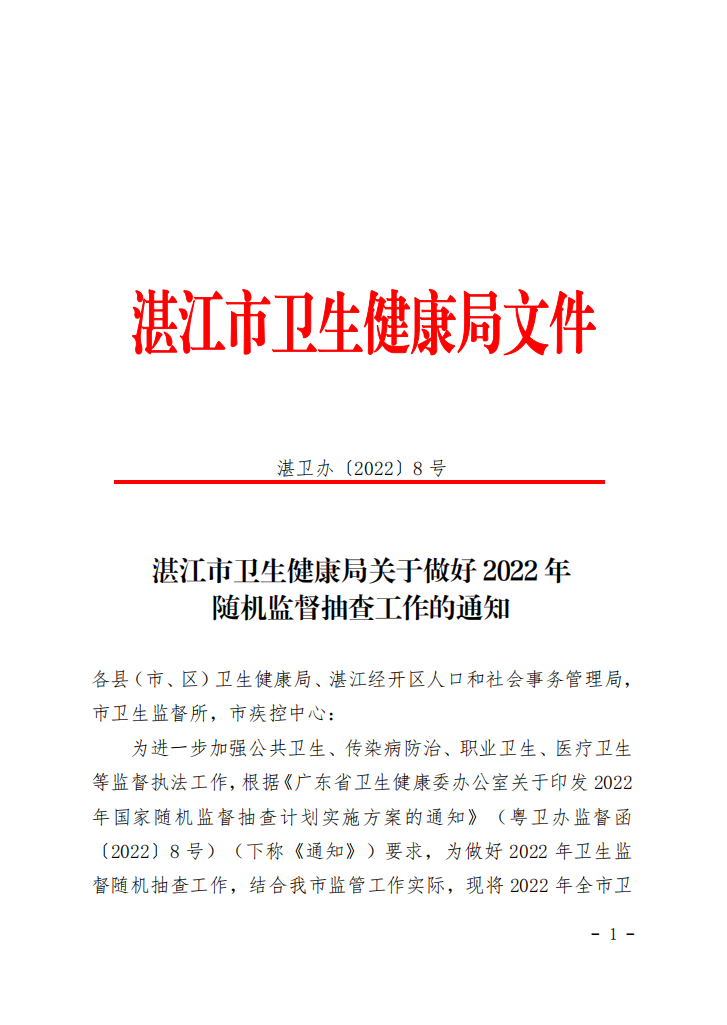 附件下載: 附件1-廣東省衛(wèi)生健康委辦公室關(guān)于印發(fā)2022年國家隨機(jī)監(jiān)督抽查計(jì)劃實(shí)施方案的通知.zip