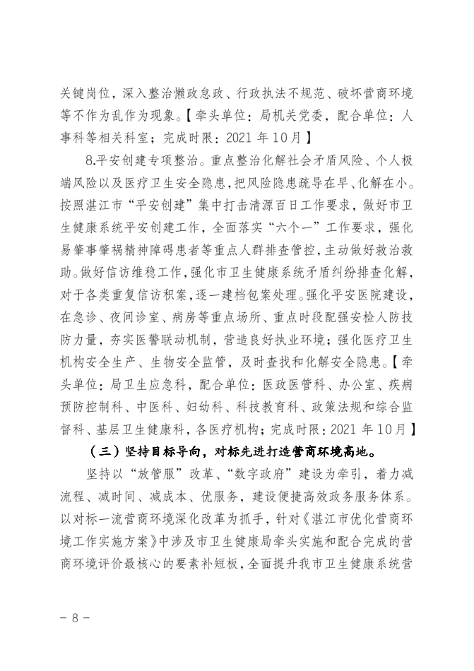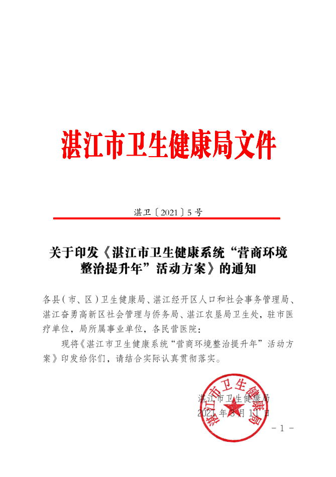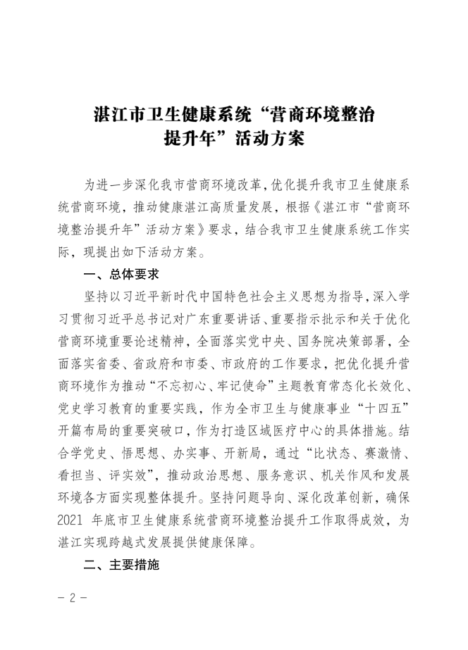 關(guān)于印發(fā)《湛江市衛(wèi)生健康系統(tǒng)“營(yíng)商環(huán)境整治提升年”活動(dòng)方案》的通知