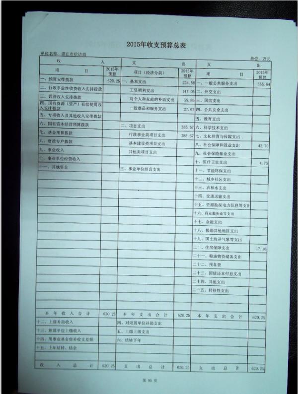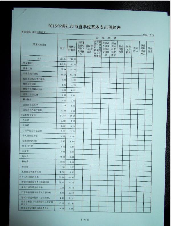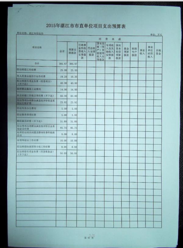 湛江市信訪局2015年度部門(mén)預(yù)算公開(kāi)表