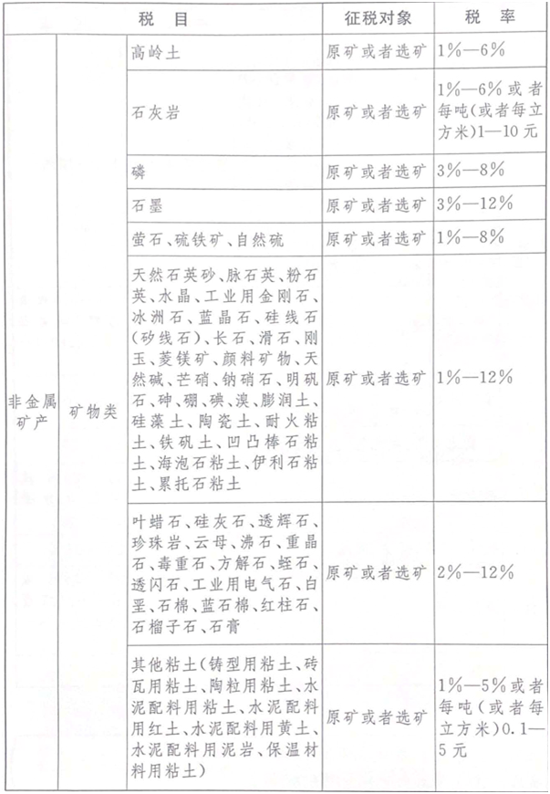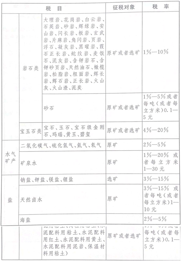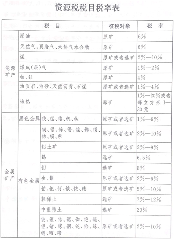 應(yīng)稅資源的具體范圍,由本法所附《資源稅稅目稅率表》(以下稱《稅目稅率表》)確定。