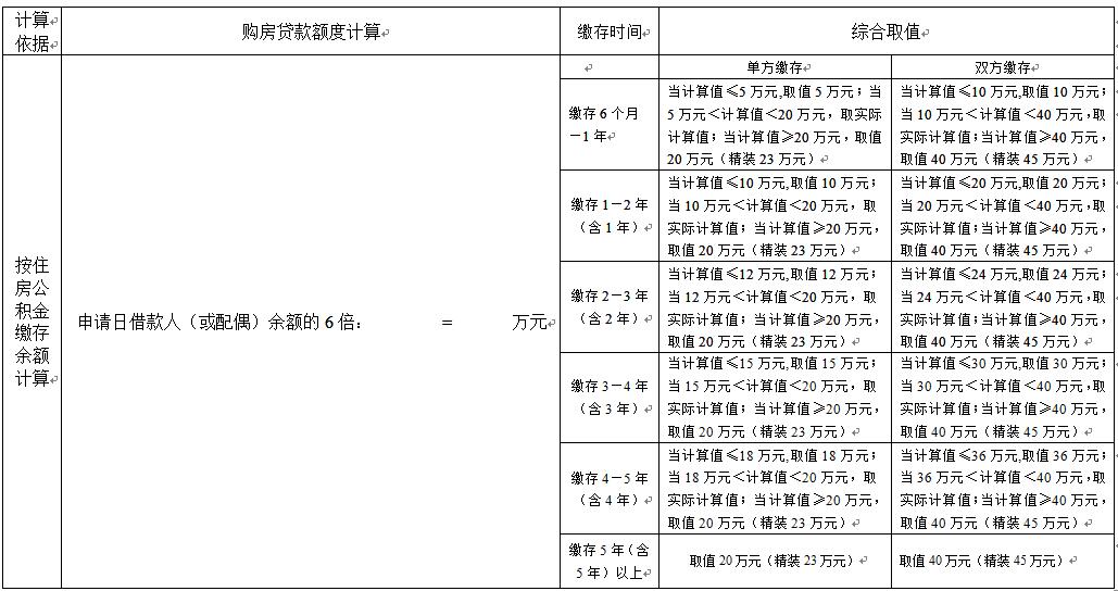 一、在赤坎區(qū)、霞山區(qū)、麻章區(qū)、坡頭區(qū)、經(jīng)濟(jì)技術(shù)開發(fā)區(qū)購買、建造、翻建、大修自住住房,最高貸款額度雙方40萬元(精裝房45萬元),單方20萬元(精裝房23萬元),具體計(jì)算見附表1。