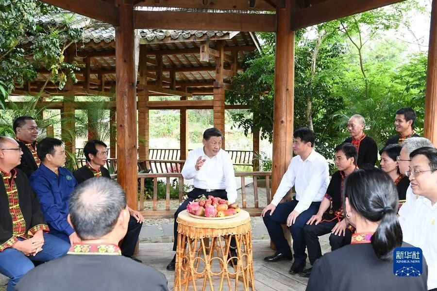 4月10日至13日,中共中央總書(shū)記、國(guó)家主席、中央軍委主席習(xí)近平在海南考察。這是11日下午,習(xí)近平在五指山市水滿鄉(xiāng)毛納村同村民們親切交流。新華社記者 李學(xué)仁 攝