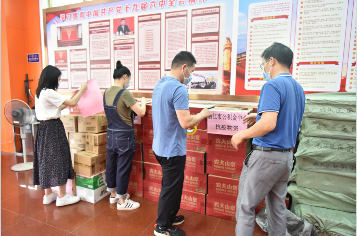據(jù)統(tǒng)計,市中心捐贈了2400支礦泉水、800盒紙巾、200盒衛(wèi)生巾等。捐贈物資雖然不算多,但這是我們公積金人的一片愛心,我們想用這片愛心溫暖著這座美麗的濱海城市,我們想共同保衛(wèi)大湛江!