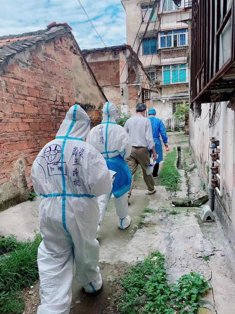 老人的住所很分散,而且多數(shù)是高樓層的步梯房或是背街小巷的瓦房,加上連續(xù)幾天的悶熱雨天,給穿著防護(hù)服逐個(gè)上門的志愿者們?cè)黾恿瞬簧俟ぷ髁亢碗y度。但是,當(dāng)志愿者們看到多年癱瘓?jiān)诖不蛘吖鹿牙先藭r(shí),憐憫之情油然而生,即使是全身被汗水濕透也無怨無悔。