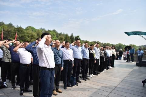 在偉人故里韶山,大家來到了毛澤東銅像廣場,在莊嚴(yán)的氛圍中,大家以整齊的隊列,沿臺階一步步走向銅像,向偉大領(lǐng)袖毛澤東同志敬獻(xiàn)花圈。在巍然挺立的毛澤東銅像前,全體黨員同志肅立,舉行莊重的鞠躬儀式,表達(dá)對偉人的崇高敬意。