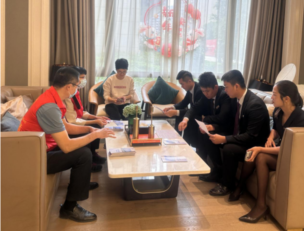 遂溪辦事處的黨員志愿者在中金時(shí)代廣場樓盤開展誠信宣傳