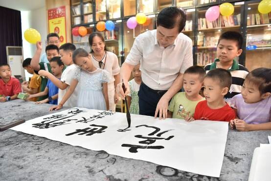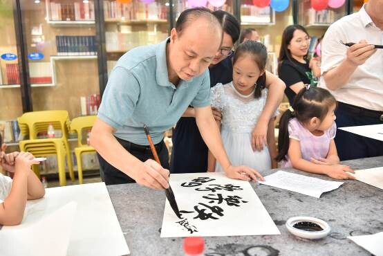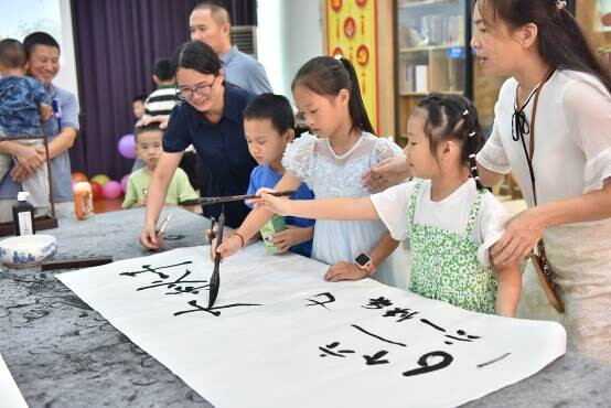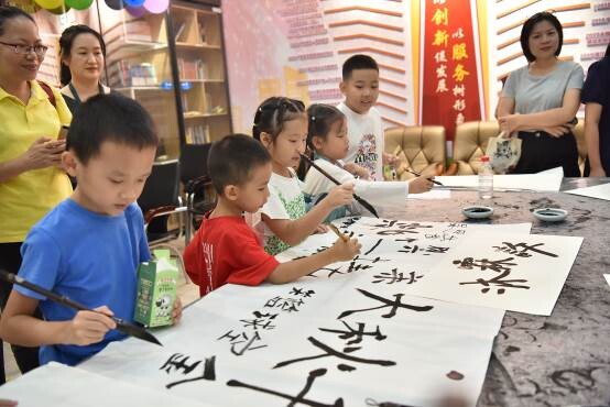 第二個(gè)故事,講好中國傳統(tǒng)優(yōu)秀文化的故事。怎么樣才能讓中國傳統(tǒng)優(yōu)秀文化更鮮活?一直以來,市中心重視傳統(tǒng)文化的學(xué)習(xí)和宣傳,如在春節(jié)開展的“春聯(lián)人人寫,祝福人人送”活動(dòng)。在這次活動(dòng)中,為了讓傳統(tǒng)優(yōu)秀文化在少年兒童中入心入腦,市中心以“講好中國傳統(tǒng)優(yōu)秀文化”為抓手,特邀請了市中心黨組書記、主任鄧世亮同志,廉江辦事處黨支部書記、主任黎強(qiáng)同志為少年兒童上書法課程。鄧世亮同志用通俗的語言向孩子們介紹了書法歷史,使他們產(chǎn)生濃厚的興趣。隨后,兩位同志從基本的握筆、運(yùn)筆等姿勢開始手把手教他們進(jìn)行書法書寫,現(xiàn)場每一位孩子都有模有樣進(jìn)行書法練習(xí),大家全神貫注,一筆一畫,勁頭十足,活動(dòng)現(xiàn)場書香味十足。在現(xiàn)場教學(xué)中,孩子們認(rèn)識書法、欣賞書法,深切感受了中華文化藝術(shù)的博大精深。