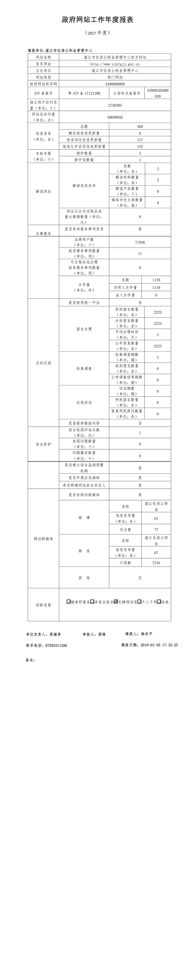 湛江市住房公積金管理中心2017年度政府網(wǎng)站工作年度報表