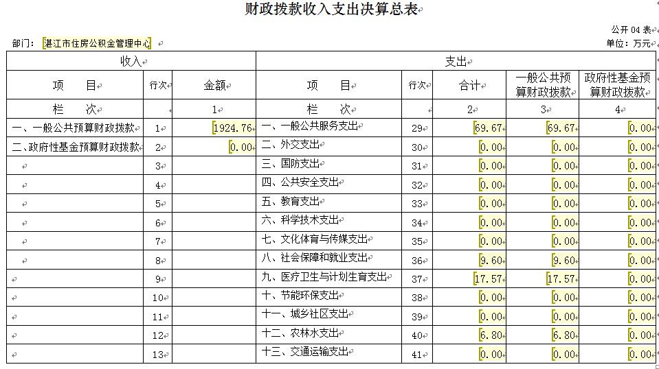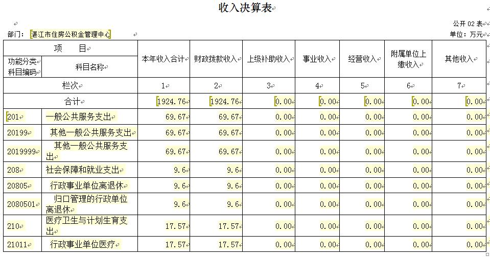 ?湛江市住房公積金管理中心2017 年度總收入 1940.59 萬元,其中本年收入 1924.76 萬元。具體情況如下: