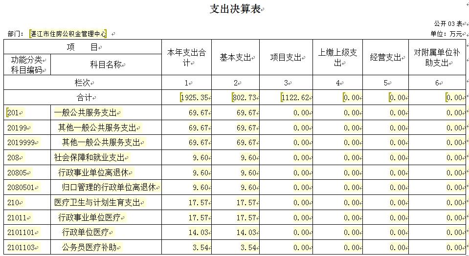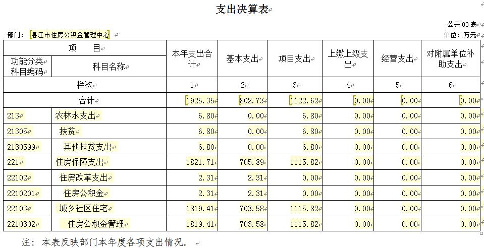 ?湛江市住房公積金管理中心2017 年度總支出 1940.59 萬元,其中本年支出 1925.35 萬元。具體情況如下: