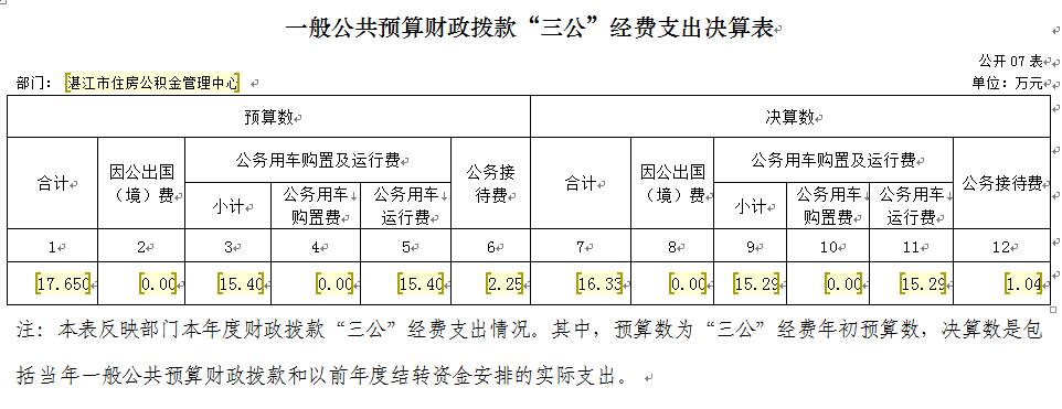 ?湛江市住房公積金管理中心2017 年度“三公”經(jīng)費財政撥款支出決算為 16.33 萬元,完成預(yù)算 17.65 萬元的 92.52% 。其中:因公出國(境)費支出決算為 0 萬元,完成預(yù)算 0 萬元的 100% ;公務(wù)用車購置及運(yùn)行費支出決算為 15.29 萬元,完成預(yù)算 15.40 萬元的 99.29% ;公務(wù)接待費支出決算為 1.04 萬元,完成預(yù)算 2.25 萬元的 46.22% 。