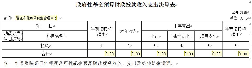 八、政府性基金預(yù)算財政撥款收入支出決算表