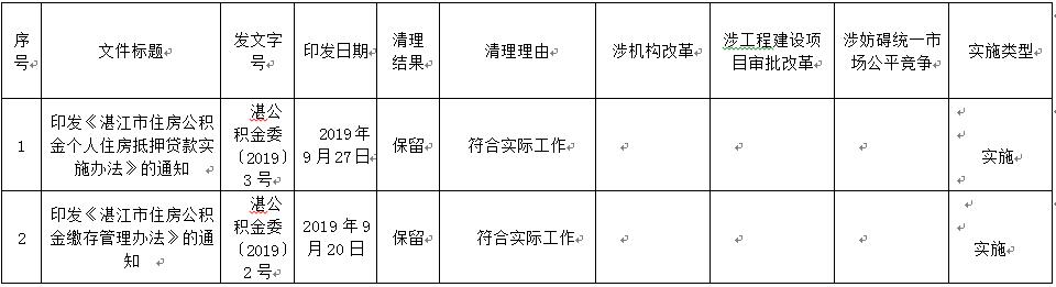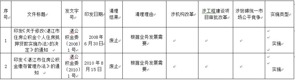 湛江市住房公積金管理中心部門規(guī)范性文件清理結(jié)果表