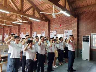 參觀完村落,市自然資源局黨組成員、總工程師鄭志良同志帶領(lǐng)全體黨員,面向鮮紅的黨旗,高舉右手莊嚴(yán)宣誓,重溫入黨誓詞,回顧入黨初心。