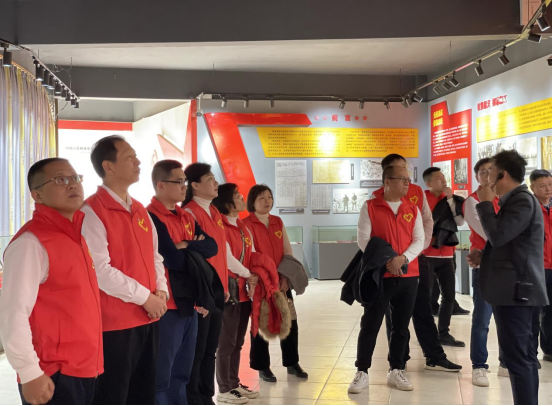 圖為黨員們?cè)谧屑?xì)聆聽講解員講解革命先烈光輝事跡
