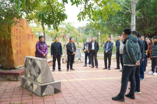 在下洋村革命基地“下洋誓師東征 粵中殺敵揚(yáng)名”石碑題字前,全體黨員干部聆聽(tīng)了講解員對(duì)該村的整體情況以及粵桂邊區(qū)人民解放軍東征支隊(duì)革命歷史的現(xiàn)場(chǎng)講解,深刻感悟到革命先輩堅(jiān)定的革命理想信念和不屈的革命斗志,從思想上、政治上受到了深刻洗禮和黨性錘煉。