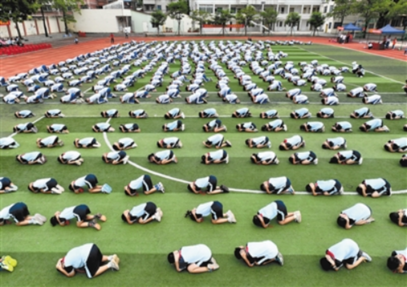 9月21日上午,湛江市第八中學(xué)師生參與防空演練